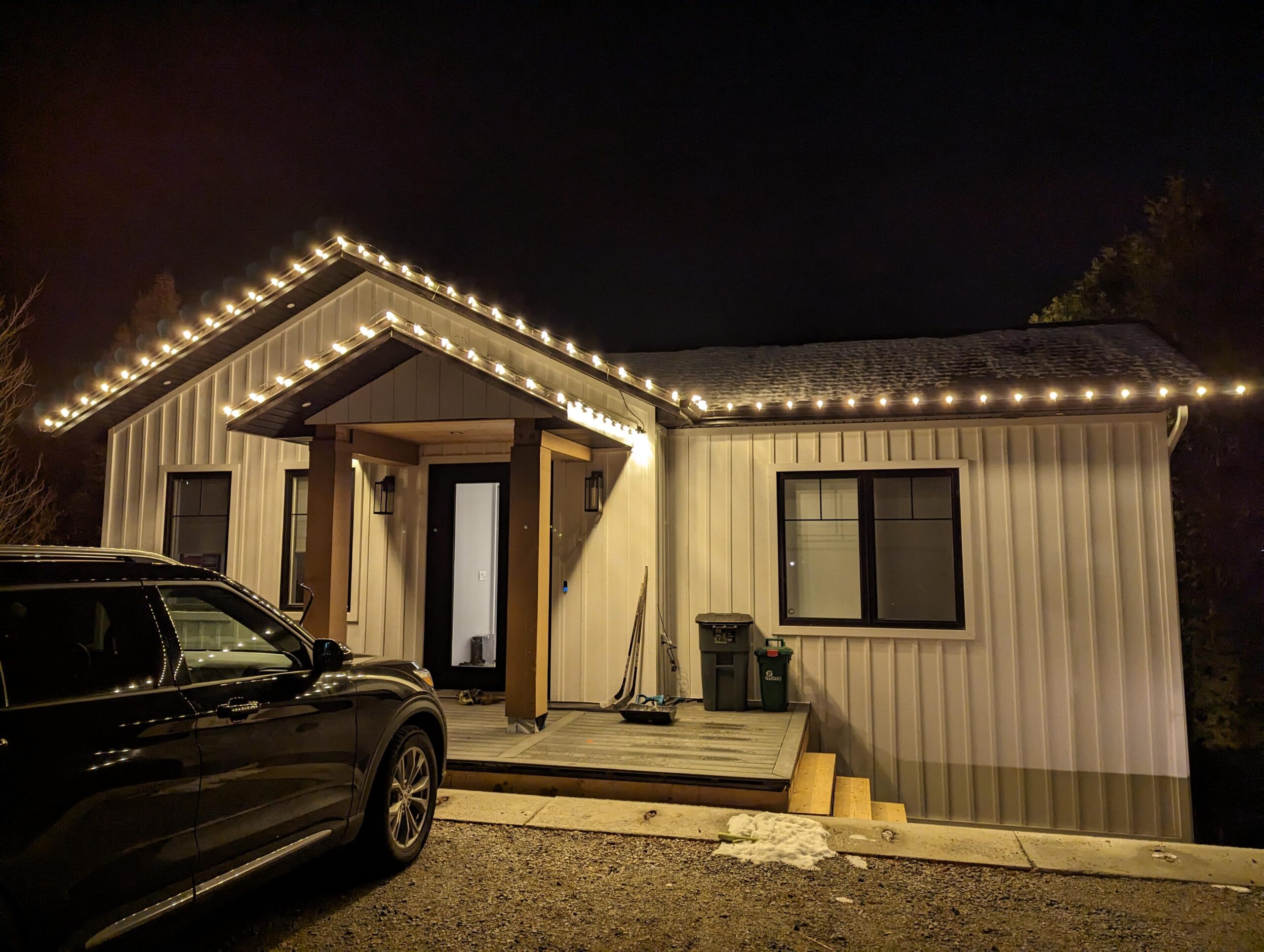 Permanent outdoor lighting in Sudbury, custom-designed for homes and businesses. Energy-efficient, low-profile installs that add year-round beauty, security, and holiday flexibility.