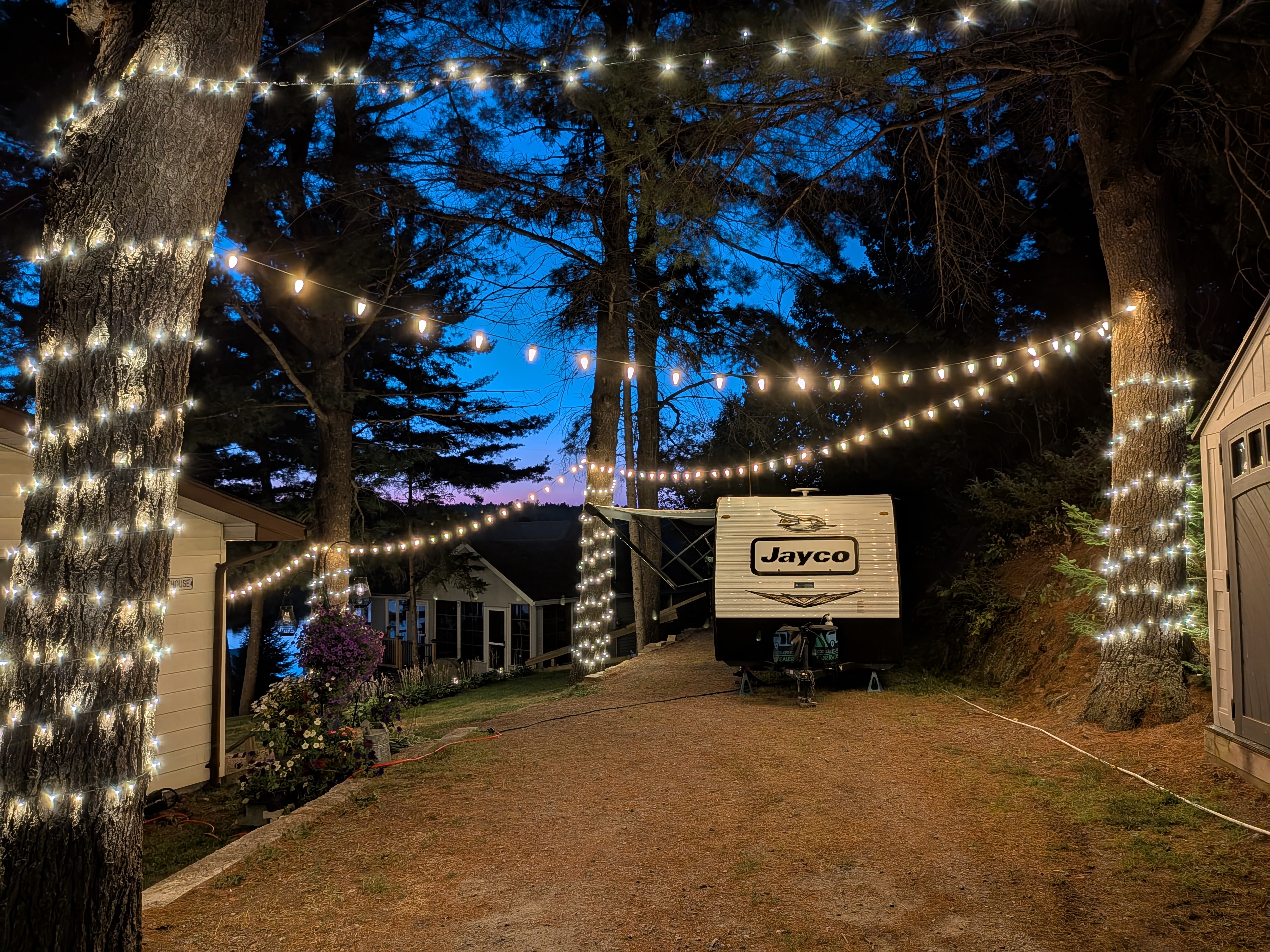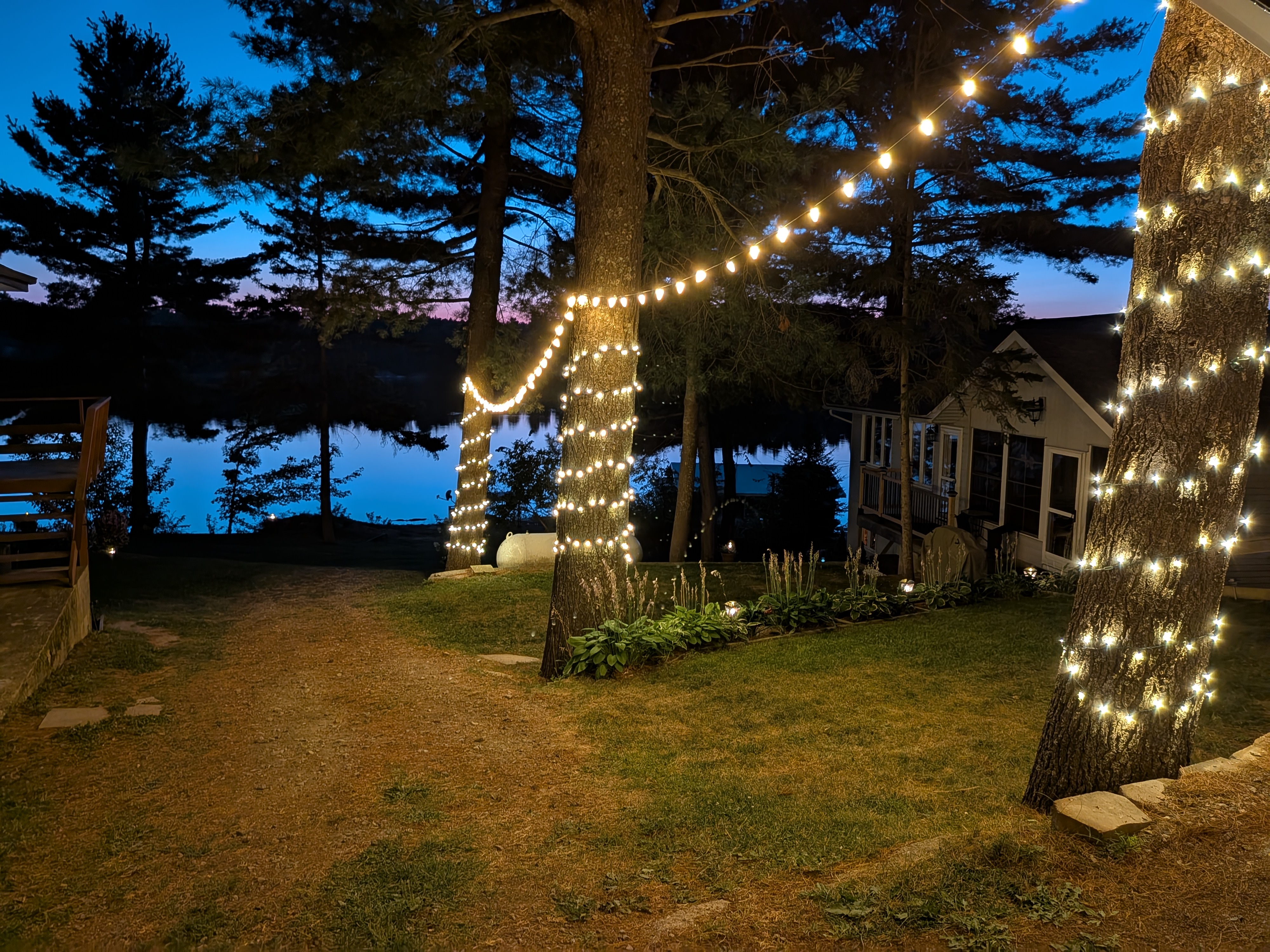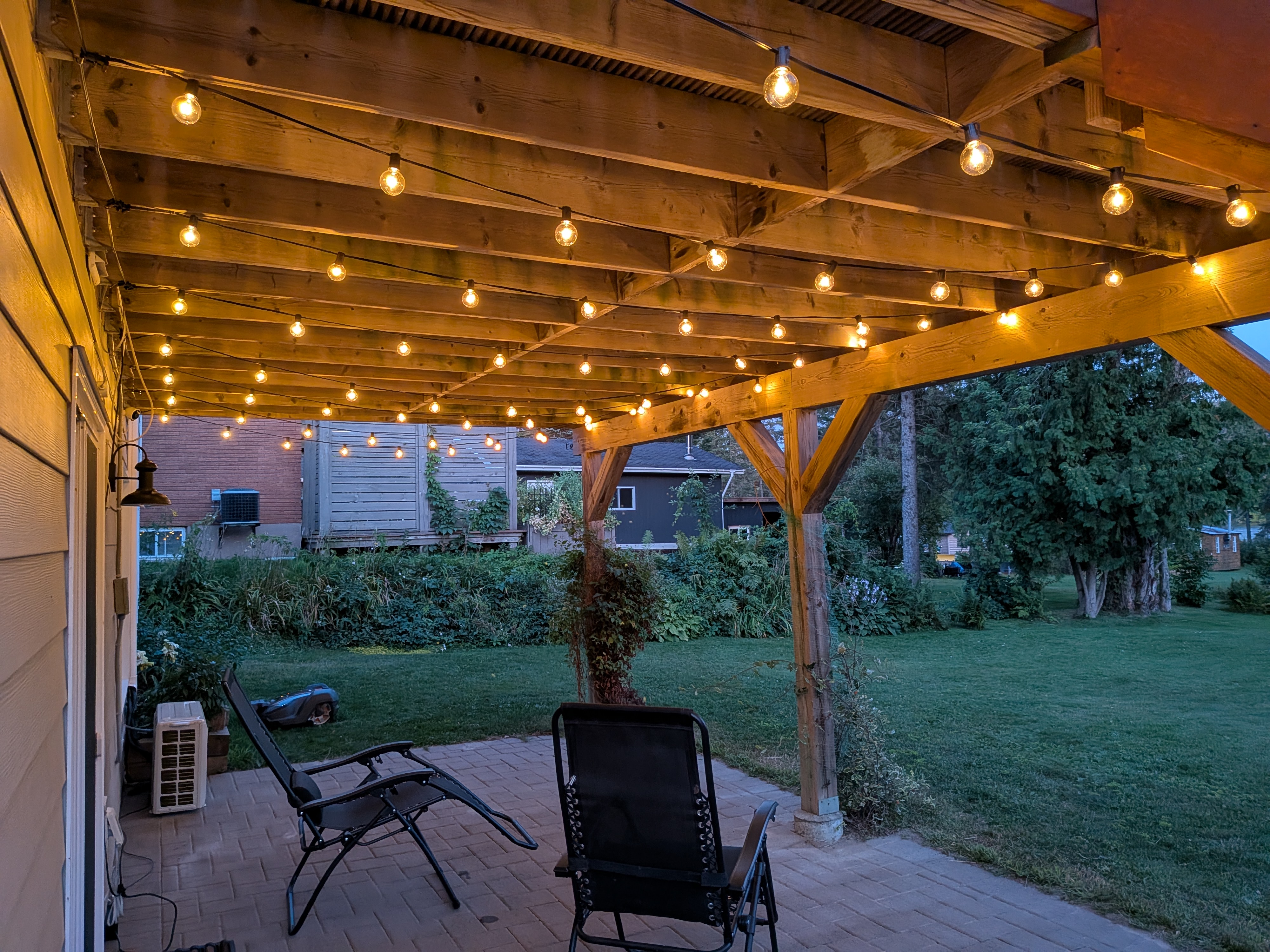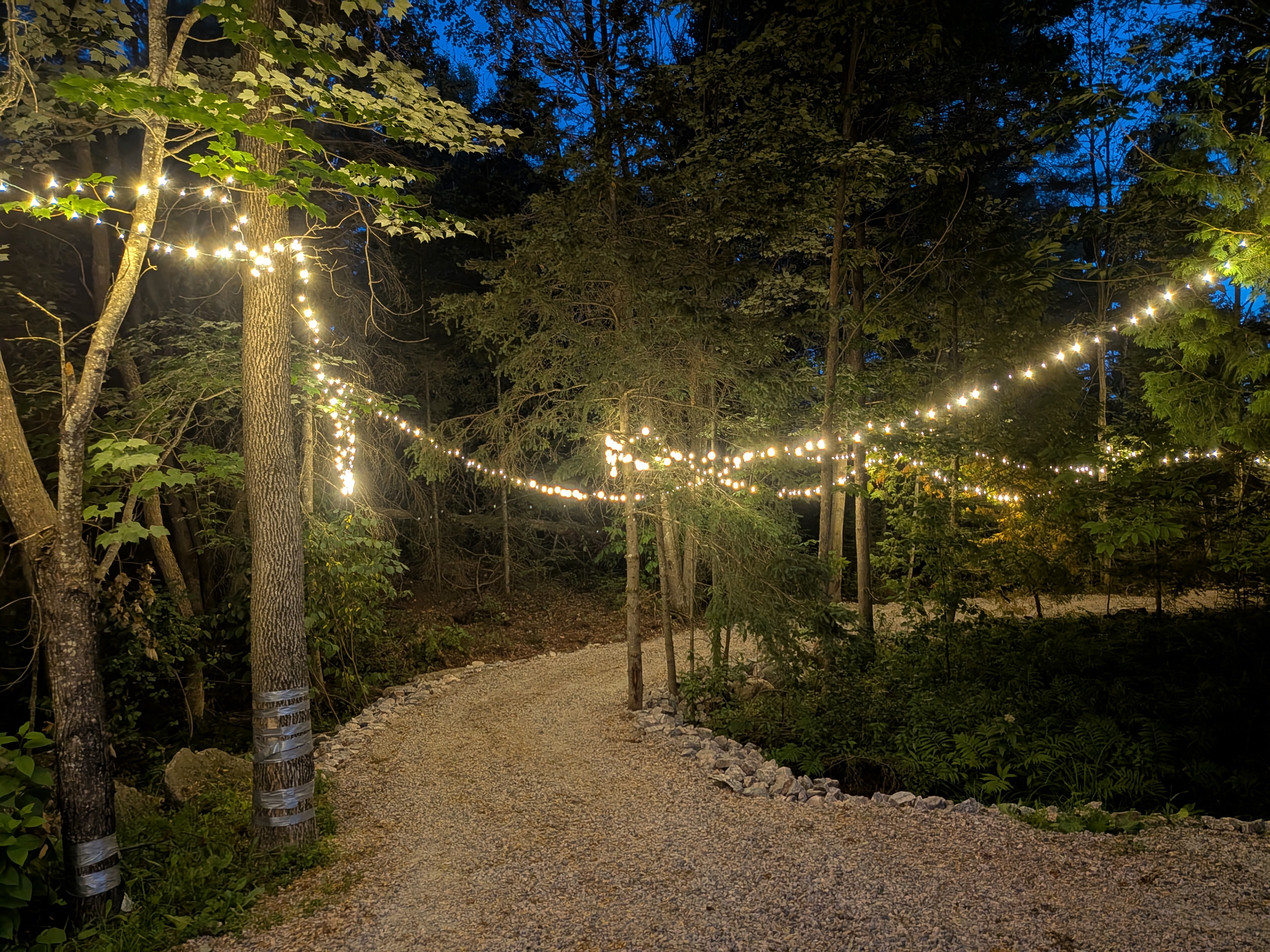 Patio and event lighting in Sudbury, designed to create warm, inviting spaces for backyards, weddings, and special occasions. Custom installs that add elegance, ambiance, and year-round enjoyment.